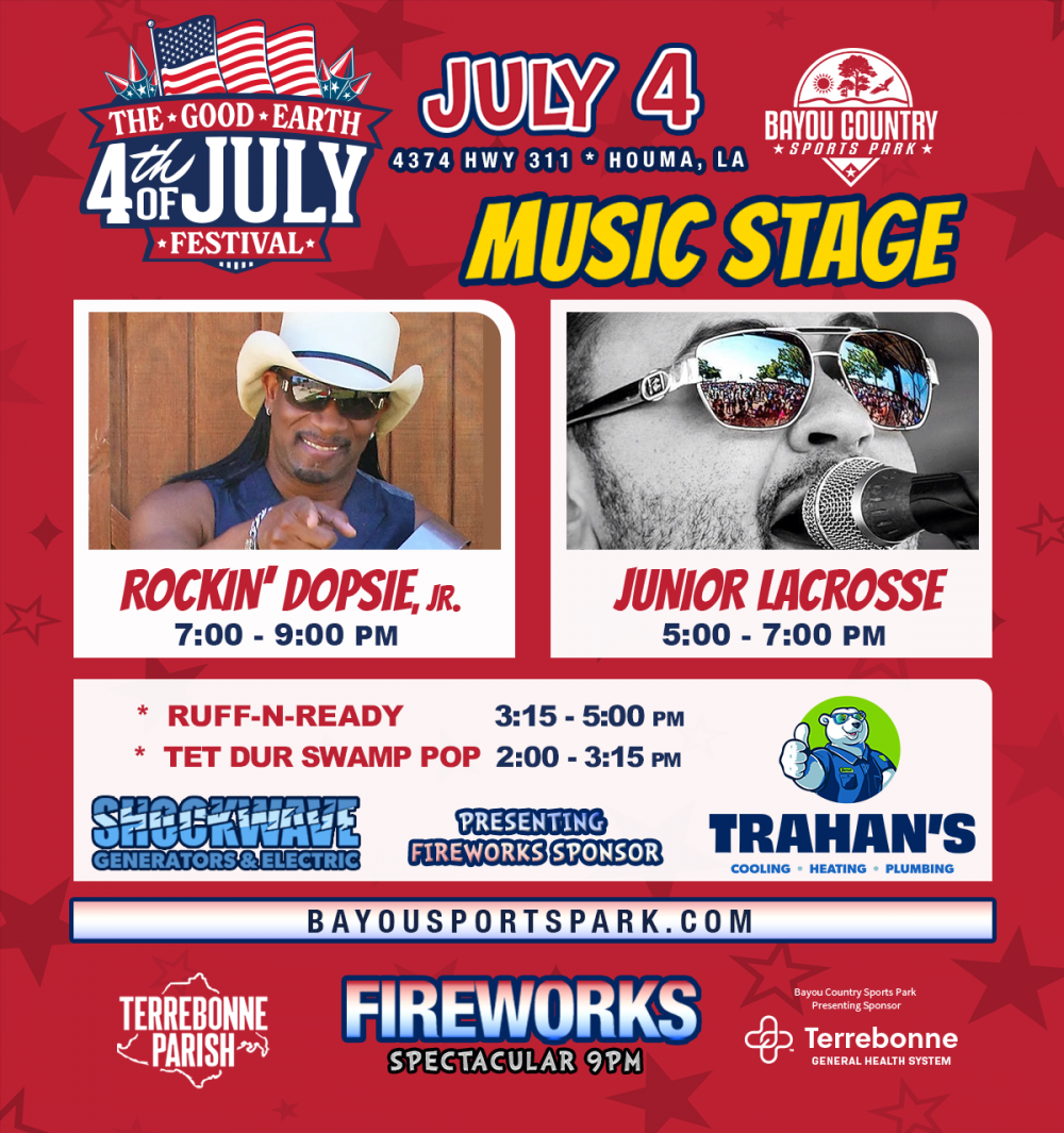 Fireworks start at 9pm at the Bayou Country Sports Park